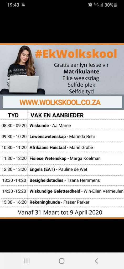 Lockdown links / Newsletter / By Johan Download dstv schedule for lessons_March 2020Download EPG_layoutDownload 6 April WerkkaartDownload Werkkaarte 7-10 AprilDownload